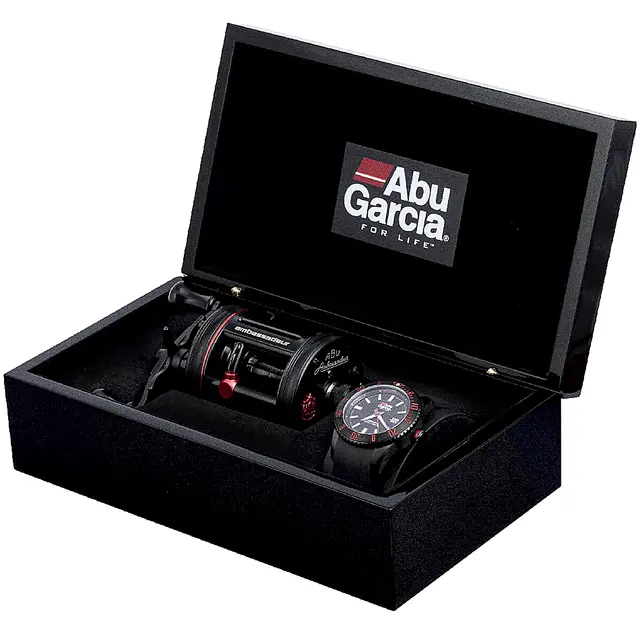 Snellen kommer i en treboks, sammen med en Quartz Abu Garcia® Watch fra EPOCH (Halda).