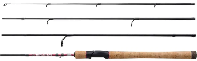 Den berømte DIPLOMAT serien er kjent som en kompakt og reisevennlig stang. Disse haspelstengene har en kort transportlengde på grunn av deres 4 eller 5-delte stangemner, men føles ut som en vanlig 2-delt stang. Perfekte stenger til å ta med på ferie, eller bare ha en liggende i bilen så man alltid er klar til å fiske. Serien inneholder mange forskjellige stanglengder og kastevekter, så har kan men være forberedt nesten uansett hvilken fiskesituasjon man kommer til. Blir levert med stangtube.