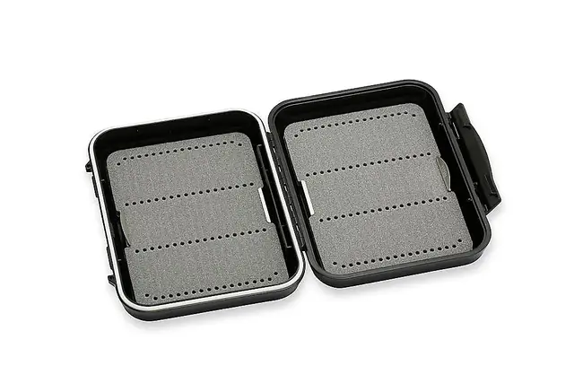 En fluekasse der to streamersystem for skum er satt inn. Skyv kroken inn i spora som er i skummet. Unngå å sette krokspissene direkte inn i skummet, da vil ikke skummet bli skadet.