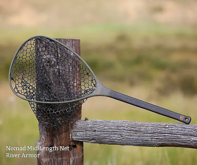 Fishpond Nomad Mid-Length Net River Armor er designet og laget for forholdene som råder der man finner favorittfisken sin. Nomad River Armor håv utgaven er konstruert med en kjerne av karbonfiber og glassfiber, og et ytre lag av vevd DuPontTM Kevlar®-fiber og karbonfiber. Resultatet er en ekstremt sterk håv med forbedret holdbarhet. Denne komposisjonen ble designet med tanke på de fiskerne som vandrer gjennom kratt og ulent terreng på let etter stigende fisk (bushwhackers). River Armor er tilgjengelig i størrelsene Mid-Length, Emerger og El Jefe.