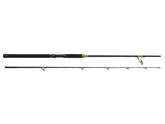Sterke og korrosjonsbestandige stangringer kompletteres av et robust snellefeste. En topp stang til lett saltvannsfiske eller til kraftig gjeddefiske.