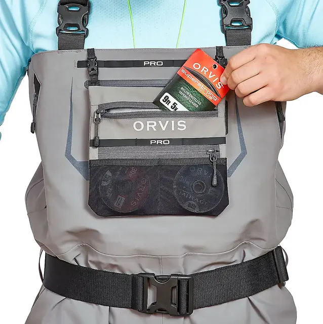 Orvis Pro Wader er klassiske pustende vadebukser. PRO Wader er perfekt når du må gå et stykke for å komme deg til fiskeplassen, den er designet for at du skal kunne bevege deg fritt i den, samtidig som den er ekstremt slitesterk.