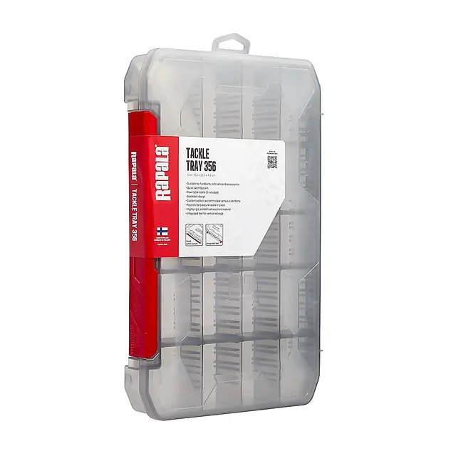 Rapala Tackle Tray 356 er en sluk- og wobblerboks av høy kvalitet. Boksene er laget på Rapala’s egen fabrikk i Finland for å matche de høye kravene alle sportsfiskere kjenner fra produksjonen av Rapala’s egne wobblere og sluk.