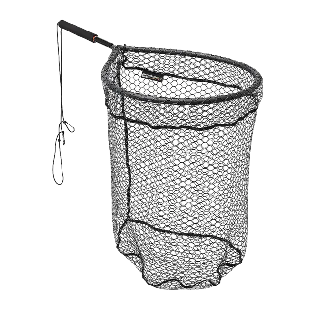 Håven har en innebygd vekt i håndtaket, slik at du raskt ser hvor tung monsterørreten eller abboren du har landet er. Nettet har en dyp form for å unngå at fisken hopper ut av håven og nettet er gummiert for å skåne fisken mest mulig samtidig som treblekroker ikke setter seg like godt fast. Utmerket håv for catch and release fiske.