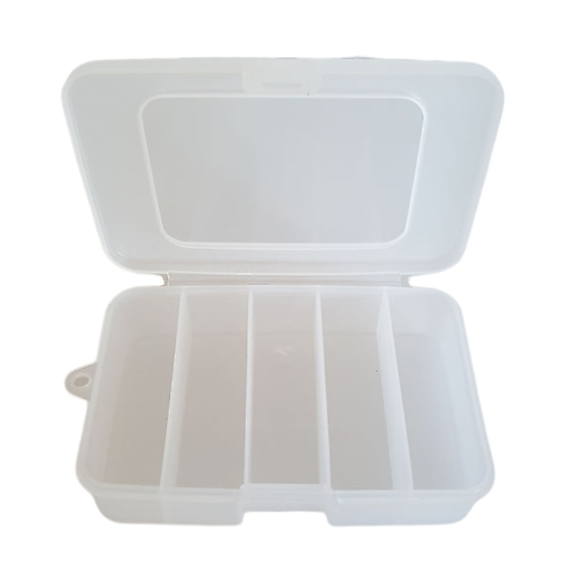 Stoxdal slukskrin med 5 rom lar deg ha kontroll på dine favoritt-sluker og -spinnere med denne slukboksen som har 5 rom og dreneringshull i bunnen slik at vann kan renne ut og fukt kan fordamp ut.