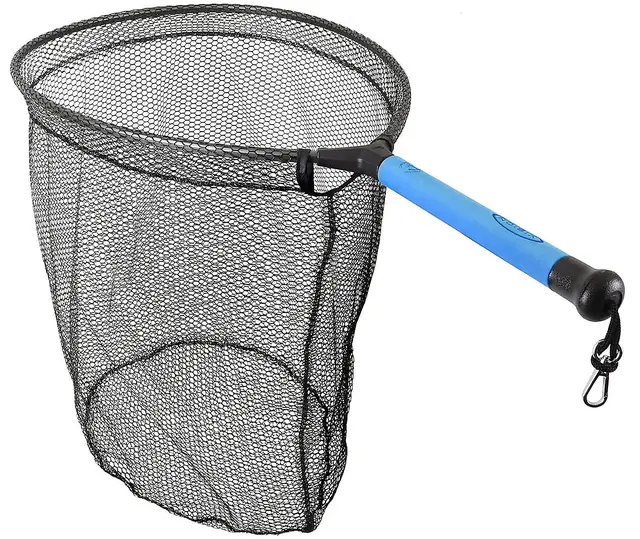 Vision Meri Net er en håv med lett aluminiumsramme, kort 24 cm håndtak og 50 cm dypt gumminett. Perfekt størrelse for stor ørret på kysten eller på elvene. Nettet har et komfortabelt blått EVA-håndtak.