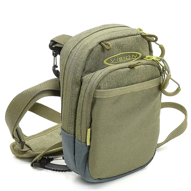 Vision Mini Bra Chestpack. Liten i størrelsen, men stor nok til dagens fluer og tilbehør. Hovedrommet tar en stor flueboks og det mindre rommet har plass til en liten boks eller massevis av tippets, fortommer og annet tilbehør. Mini BH kan også brukes på et vadebelte.