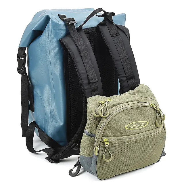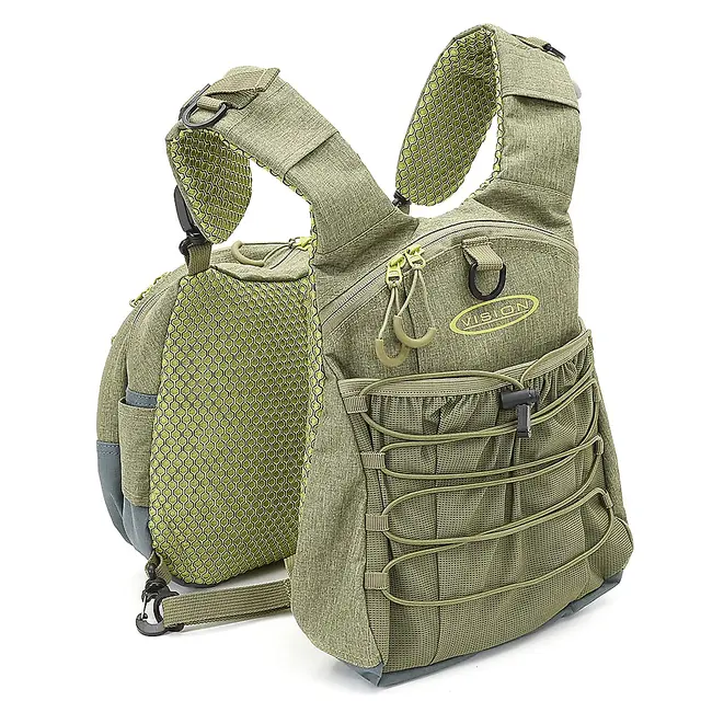 Vision Mycket Bra fluevest. Denne gamle favoritten er veldig allsidig. Du kan bruke fronten individuelt med medfølgende nakke- og midjestropper, eller du kan enkelt feste den til visions Aqua Day Pack eller nesten hvilken som helst annen ryggsekk.